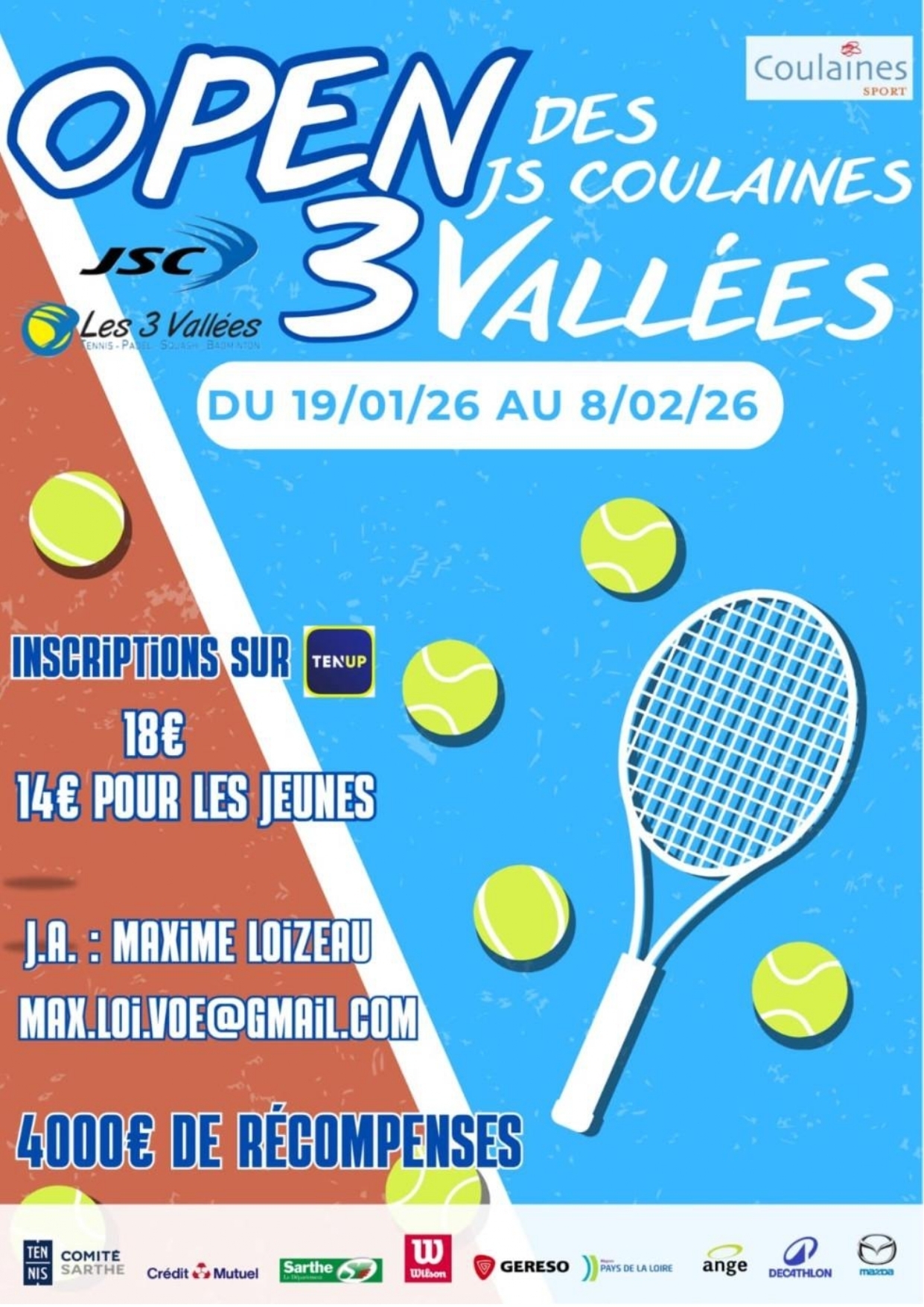 La section tennis des JSC organise l’Open des JS Coulaines 3 Vallées, un rendez-vous incontournable pour les passionnés de tennis.